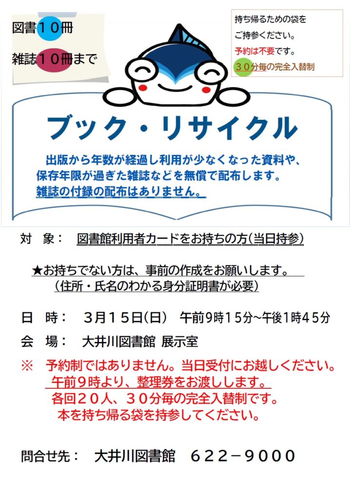 各回20人、30分毎の完全入替制です。本を持ち帰る袋を持参してください。