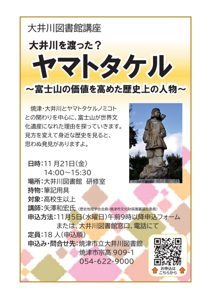 【大井川図書館講座】「大井川を渡った?ヤマトタケル」~富士山の価値を高めた歴史上の人物~