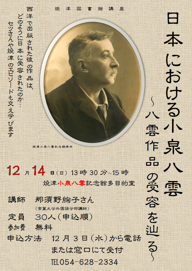 【キャンセル待ちの枠のみ空いてます】焼津図書館文学講座「日本における小泉八雲~八雲作品の受容を宿る~」の参加者を募集します!