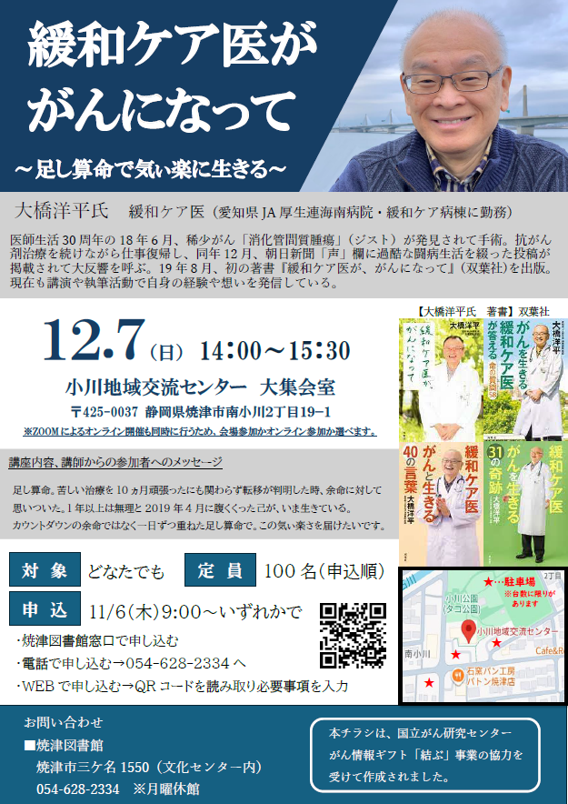 がん講演会「もしがんになったら知っておきたいこと」&「緩和ケア医ががんになって」