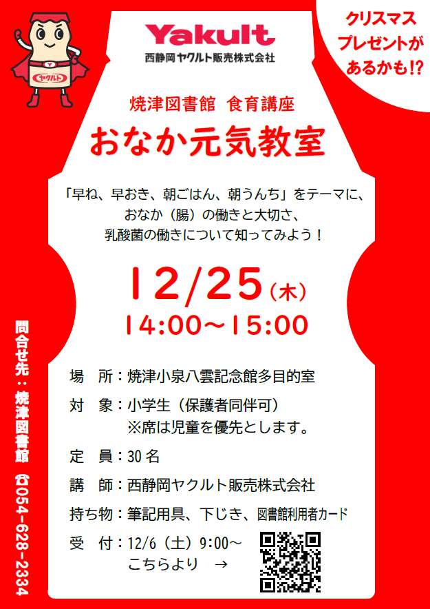 焼津図書館食育講座 ヤクルト「おなか元気教室~早ね、早おき、朝ごはん、朝うんち~」