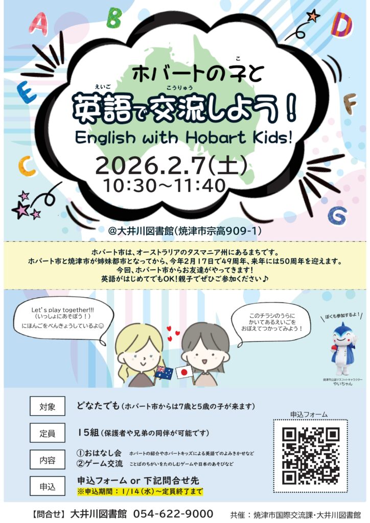 国際交流課、大井川図書館共催事業 ホバートの子と英語で交流しよう! ~English with HobartKids!~
