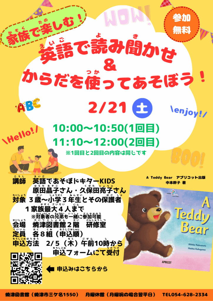 焼津図書館「家族で楽しむ!英語で読み聞かせ&からだを使ってあそぼう!」